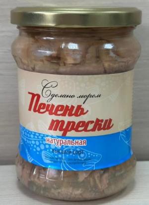 Печень трески натуральная из охлажденного сырья (стеклянная банка 500 грамм)