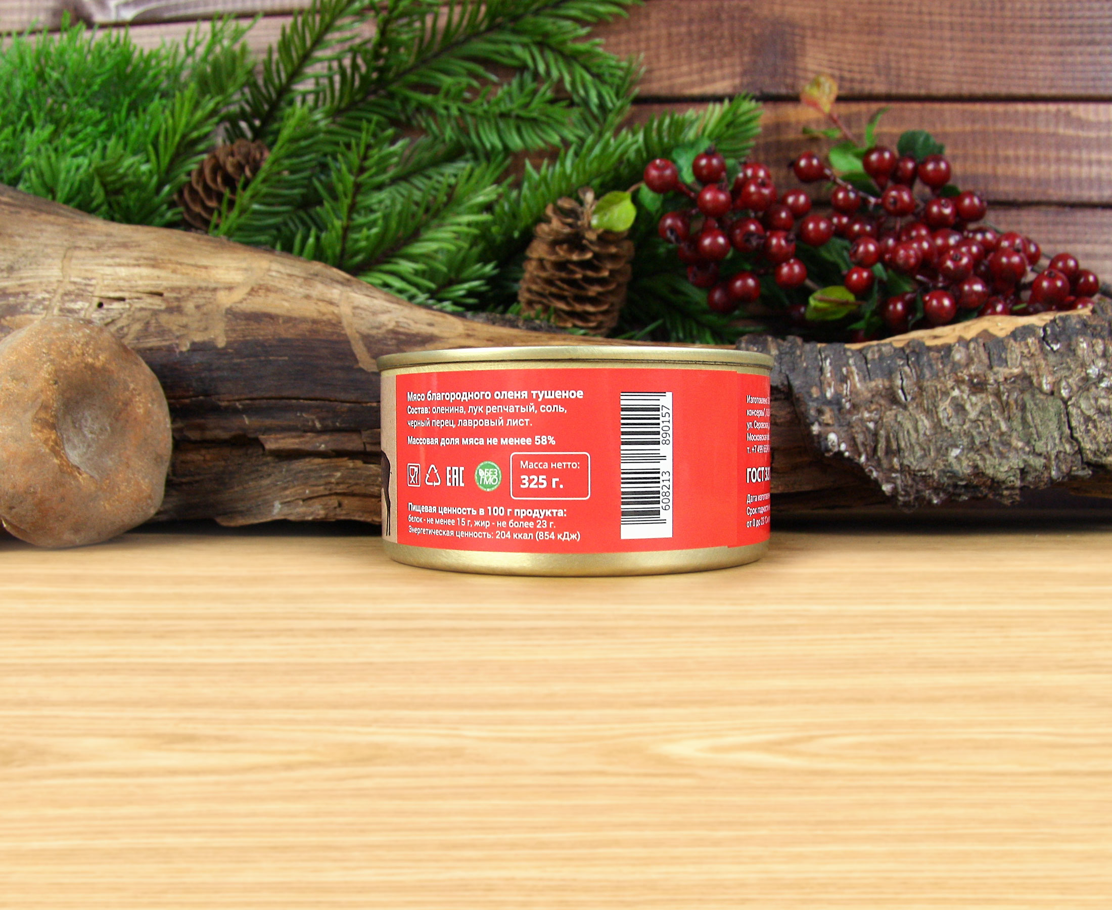 Состав: оленина, лук репчатый, соль, черный перец, лавровый лист.