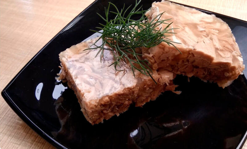 Приобрести набор для холодца из конины значит освободить себя от рубки костей, обрези, сортировки мяса. Готовый набор сразу можно закладывать в кастрюлю и готовить наваристый бульон для студня. Конские косточки и обрезки следует варить дольше, чем говядину и свинину. Для того, чтобы бульон получился светлым, его варят на максимально малом огне. Вкус у конского холодца, заправленного чесноком, кусочками моркови, специями намного насыщеннее. В костях лошади содержится большое количество желатина, поэтому холодец быстрее застывает и получается плотным. К блюду подают горчицу или хрен.